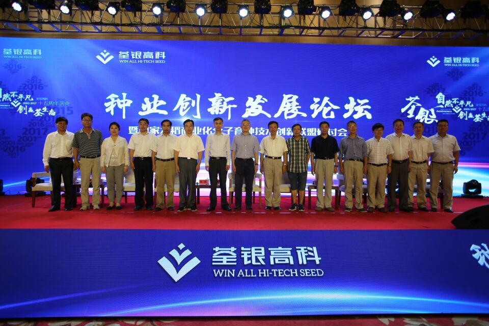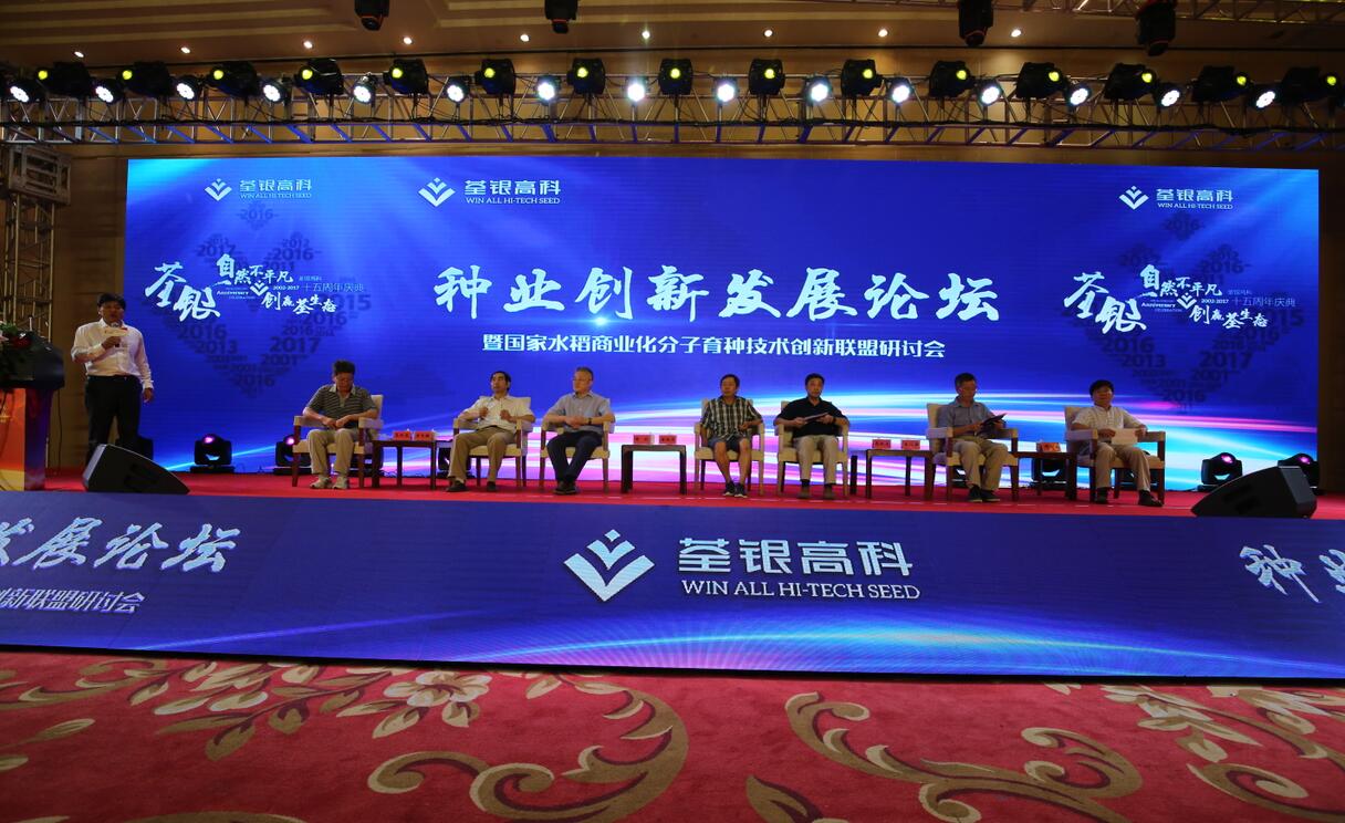 十五載風(fēng)雨兼程,十五載春華秋實(shí)!2017年8月29日,科企合作戰(zhàn)略簽約儀式·種業(yè)創(chuàng)新發(fā)展論壇暨荃銀高科成立15周年慶典大會在合肥隆重舉行。農(nóng)業(yè)部種子局局長張延秋,農(nóng)業(yè)部科教司司長廖西元,中國科學(xué)院院士、國家基因研究中心主任、上海植生生態(tài)所所長韓斌,中國種子協(xié)會副會長兼秘書長蔣協(xié)新,安徽省科技廳廳長宛曉春,安徽省農(nóng)業(yè)委員會副主任周世其、朱永東,“中國種業(yè)十大功勛人物”、荃銀高科創(chuàng)始人、安徽張海銀基金會理事長張海銀先生,以及來自農(nóng)業(yè)部、中國種子協(xié)會和省、市有關(guān)部門的領(lǐng)導(dǎo)、專家、嘉賓,國家水稻商業(yè)化分子育種技術(shù)創(chuàng)新聯(lián)盟的科學(xué)家,戰(zhàn)略合作簽協(xié)單位代表,種業(yè)界同仁,還有來自印度尼西亞、孟加拉、巴基斯坦、越南等國家的20多位外賓朋友,計500多人參加了此次活動。