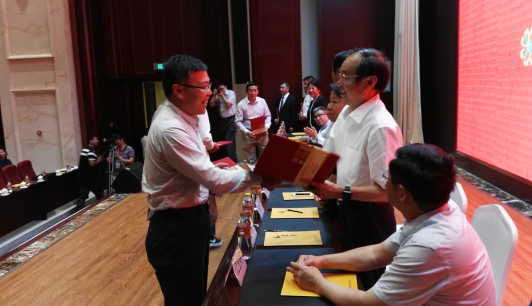 主席臺就坐領(lǐng)導(dǎo)為獲獎?wù)哳C獎(2)
