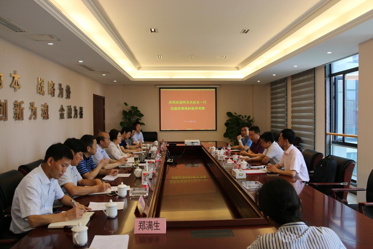 ??? 2018年5月29日,農(nóng)業(yè)農(nóng)村部科教司高新技術(shù)處處長(zhǎng)何藝兵帶隊(duì),全國(guó)農(nóng)技推廣服務(wù)中心處長(zhǎng)邱軍、中國(guó)農(nóng)業(yè)科學(xué)院科技局處長(zhǎng)林克劍、科教司項(xiàng)目專(zhuān)員吳圣勇博士蒞臨荃銀高科調(diào)研指導(dǎo)。安徽省種子管理總站副站長(zhǎng)汪社寬、主任科員朱國(guó)邦,安徽荃銀高科董事長(zhǎng)張琴、副董事長(zhǎng)陳金節(jié)、副總經(jīng)理張從合、朱全貴等參加調(diào)研座談會(huì)。