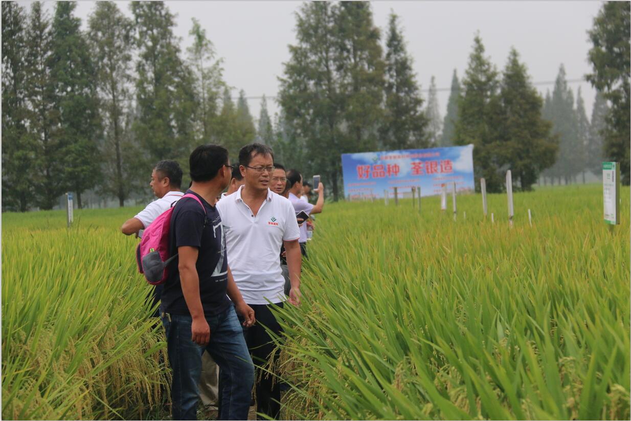 ??? 展會在安徽宿州市、合肥廬江縣和安徽省農(nóng)大郭河產(chǎn)學研基地設(shè)立了3個室外品種種植展區(qū),占地600畝。荃銀高科及控股子公司種植約80多個水稻新品種供大家觀摩,得到廣泛好評。