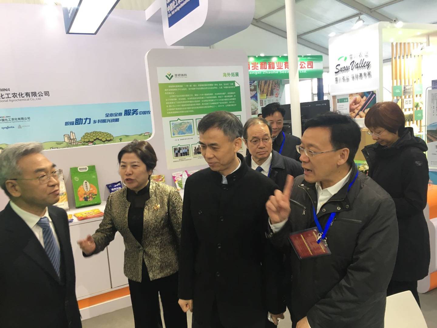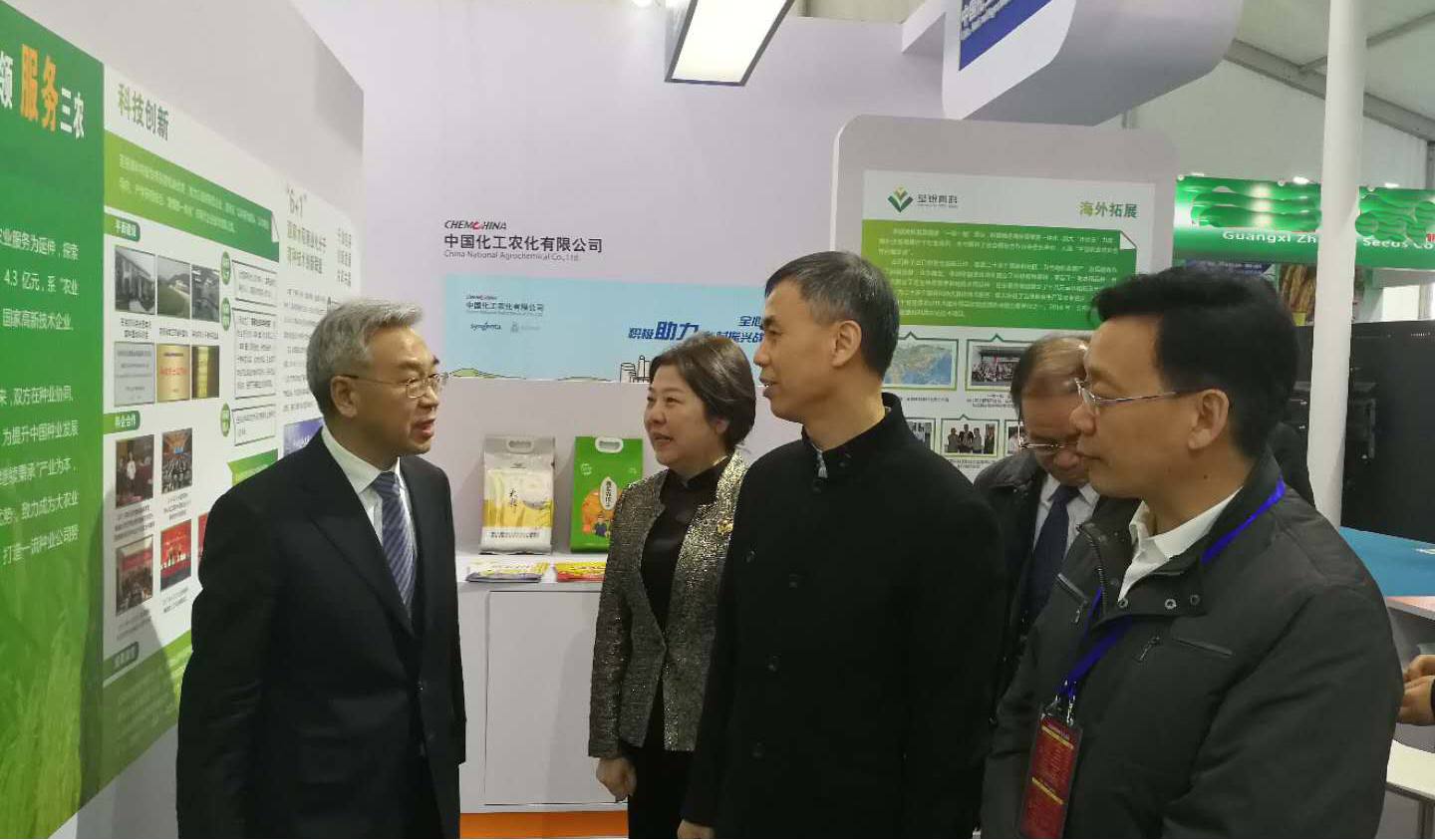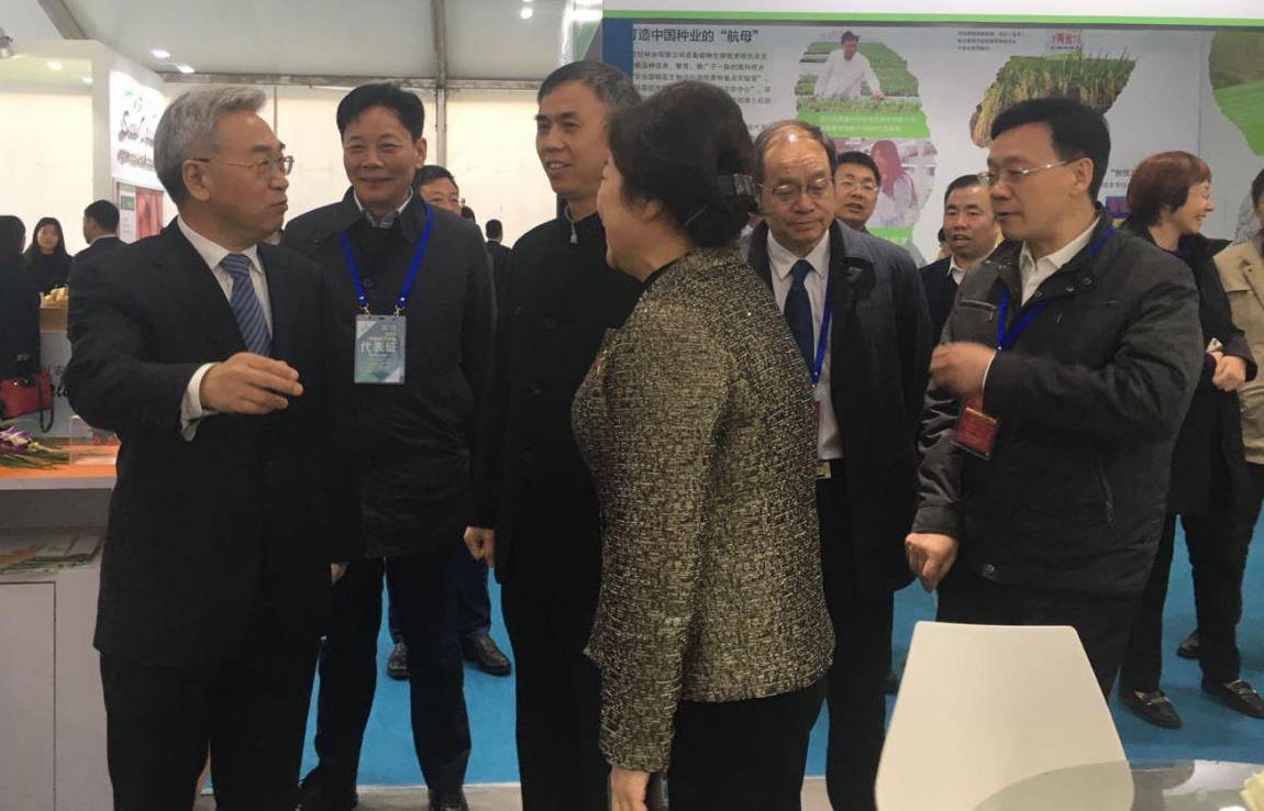 ??? 中化農(nóng)業(yè)總裁、荃銀高科董事長覃衡德先生,“中國種業(yè)十大功勛人物”、公司創(chuàng)始人張海銀先生等領(lǐng)導(dǎo)、專家蒞臨荃銀高科展廳巡展。
