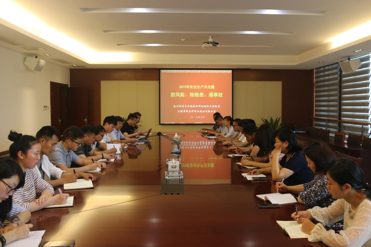 ??? 2019年6月26日上午,荃銀高科副總經(jīng)理張從合帶領(lǐng)公司科研部、分子實(shí)驗(yàn)室、質(zhì)檢部、項(xiàng)目辦和荃銀瓜菜等相關(guān)部門人員開(kāi)展了以“防風(fēng)險(xiǎn)、除隱患、遏事故”為主題的“安全生產(chǎn)月”活動(dòng)。