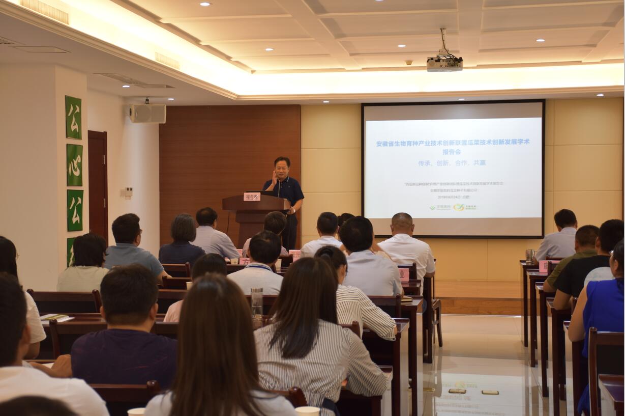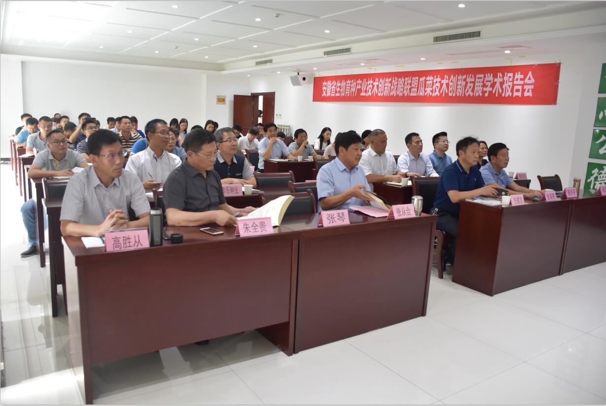 ??? 24日下午,安徽省生物育種產(chǎn)業(yè)技術(shù)創(chuàng)新戰(zhàn)略聯(lián)盟瓜菜技術(shù)創(chuàng)新發(fā)展學(xué)術(shù)報告會召開,合肥市科技局農(nóng)村與社會發(fā)展科技處處長方建東,安徽省蔬菜產(chǎn)業(yè)技術(shù)體系首席專家、國家西甜瓜產(chǎn)業(yè)技術(shù)體系合肥綜合試驗(yàn)站站長張其安研究員,豐樂種業(yè)、徽大農(nóng)業(yè)等安徽省生物育種產(chǎn)業(yè)技術(shù)創(chuàng)新戰(zhàn)略聯(lián)盟成員及員工70余人參加了報告會。